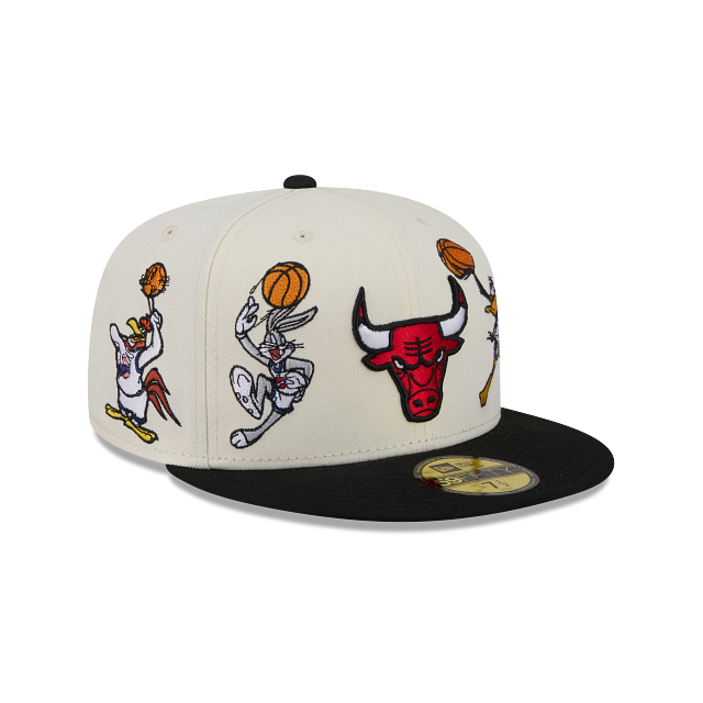 Esta gorra plana New Era 59FIFTY de Chicago Bulls de la colección Space Jam X NBA presenta el logotipo de los Bulls bordado en los paneles frontales, un all over de personajes de los Looney Tunes bordados en la corona y el flag de New Era bordado del lado izquierdo. Cómprala ya.