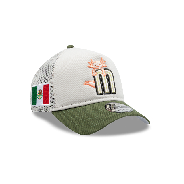Esta gorra curva New Era 9FORTY A-Frame Trucker de México de la colección MLB World Baseball Classic Ajolote presenta el logotipo de la icónica M con un ajolote bordado en el panel frontal, la bandera de México del lado derecho, el logo de WBC en la parte de atrás y el flag de New Era bordado del lado izquierdo. Cómprala ya.
