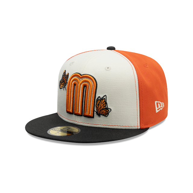 Esta gorra plana New Era 59FIFTY de México de la colección MLB World Baseball Classic Mariposa Monarca presenta el logotipo de la icónica M bordado con mariposas monarca en los paneles frontales, una mariposa monarca del lado derecho, el logo de WBC en la parte de atrás y el flag de New Era bordado del lado izquierdo. Cómprala ya.