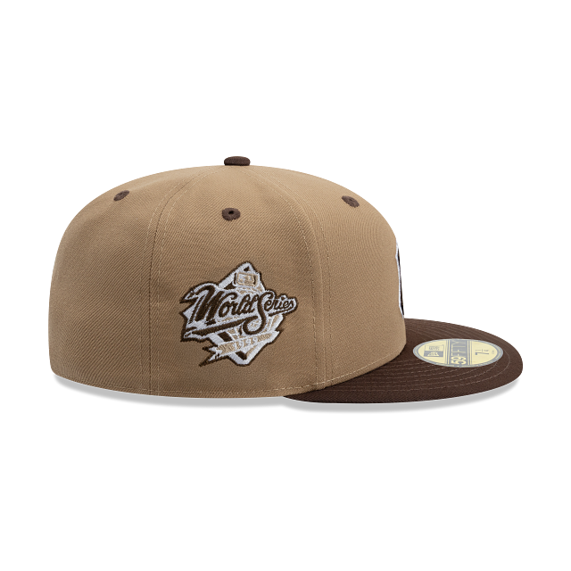 Esta gorra plana New Era 59FIFTY de New York Yankees de la colección MLB Burnt Wood Patches presenta un diseño en color khaki con el logotipo de los Yankees bordado en los paneles frontales, parche conmemorativo del lado derecho, el MLB Batterman en la parte de atrás y el flag de New Era bordado del lado izquierdo. Cómprala ya.
